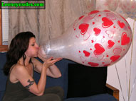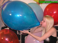 You just can't keep a great popper down. Beverly is back and she is as fantastic as ever. She begins her new adventure by blowing up a Qualatex Stuffer 18" with hearts on it. The balloon just can't take any more of Beverly's air and reluctantly explodes. Then Beverly starts blowing up an amazing SA 24" with a transparent marble pattern on it. She goes back and forth with between her lips and the pump until it too can take no more. She seemlessly goes back and forth between blow to pops and many other forms of play including crushing, stomping and sit popping. Lets also not forget one of Beverly's other favorite toys, the helium tank. Quite a few Uniques and Qualatexes meet their maker from the tank and its lighter than air gas. Beverly just watches in pure delight as the balloons struggle to maintain their stretching form against the pressure of the gas. A big smile is the result when the balloons finally explode. Beverly adds her unique form of balloon eroticsm to her play. This is obvious when she plays with a Qualatex 24". Click on the film real for a nice preview trailer of the movie.