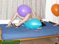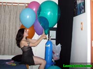 Beverly is asked a favor by her best friend to blow up balloons for a party she is throwing. Even though she is a bit scared of balloons, Bev knows her friend needs her and she can't let her friend down. Beverly tries to convince herself that her fear is not rational and decides to confront it head on. It isn't long before her fears of popping begin to change to more pleasurable feelings. Soon all she wants to do is touch the balloons. She starts out experimenting by sitting on a couple small balloons and is fascinated by how the necks expand and stretch out. The eventual pop initially startles her, but in a way that turns her on. It isn't long before the new feeling start to overcome her and she takes her clothes off and she begins to sweat. She starts rubbing the against her breasts, taking pleasure in the way they feel against her nipples. And when they pop, they give her a tingling sensation that builds up the juices inside her. After a bunch of sit popping, Beverly decides to give blow to pop a try. Things then continue to intensify. She takes a big clear balloon and places it between her legs, stroking it against her vagina, and gives the viewer a clear image right through the balloon. She eventually has to take a break to regain her composure. When she returns, Beverly tries to refocus her efforts on getting the party ready. She decides to give the helium tank a try, but she can not resist the temptation to let the gas continue flow with every balloon. After the booms on the tank, Beverley is hot and turned on once again. She returns back to rubbing the balloons on her naked body and sit popping them. She cries out how the balloons, "make me feel so good". Mixed in with a bit more blow to pop, this is Beverly at her erotic and sexy best. In the end, she destroys all the balloons she was supposed to use for decorations, and quickly runs out the door leaving her friend to discover the mess she made and wonder exactly went on with Beverly and the balloons. Be sure to click on the film reel below for a sample clip from the video.