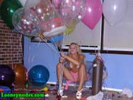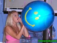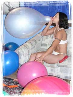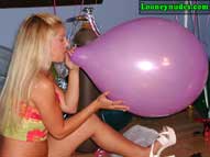 Hollie begins her video by blowing up more helium balloons and adding them to an already helium filled room. When one accidently pops, Hollie discovers that popping balloons can be very fun. After a blow to pop on the helium tank, she starts to get into the action. Stomping on balloons with her heels is a delight. Then she pulls out a Lavender balloon and begins blowing up that ends in a good neck and a big bang. Hollie is really getting heated up now, and so the shirt has to come off revealing her lovely breasts. More squeezing, stomping and sitting occurs before going back to the helium tank for another blow to pop. Then Hollie decides for another blow to pop by mouth. Now the panties come off, and Hollie starts to get a bit naughty with the balloons. Tubbing them against her body and between her legs, she is having a very good time. Hollie then tackles the near impossible, the blowing to pop of an 18" Qualatex Stuffer. The balloon though is not match for Hollie's relentless attack on it, and finally explodes with a huge bang. After a quick change of clothes, Hollie gets right back into the swing of things and begins by blowing to pop a Tilly Carnival. One blow to pop isn't enough though, so she picks out an orange Unique and blows into it until there is nothing left. She is simply ferocious with popping the balloons. Then, she notices the cluster of 16" clear Qualatex Sprays. They are just too tempting to pass up. Using her heels and nails, she makes quick work of them. Hollie enjoys popping the balloons in many ways. With all the remaining air and helium filled balloons, she spends some quality time rolling on and rubbing them, sitting squeezing, and stomping until none are left. Hollie ends her video with a blow to pop of a pink balloon which she really, really enjoys :). Be sure to click on the film reel below for a sample clip from the video that will leave you craving for more.