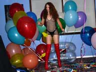 Lena wants information from her balloon suspects, and when they don't start to spill their beans, she turns up the heat. She systematically begins to pop some of the balloon prisons in an attempt to make an example to their friends. When Lena still doesn't get the cooperation she wants, thing turn ugly as her patience runs out. Like a scene from the Cold War, Lena starts torturing the balloons in an attempt to make them give up what they know. The more the balloons resist, the more evil Lena becomes as the years of her naked balloon interrorgation training begins to take its toll on her balloon prisoners. It doesn't take a CIA spy to guess if Lena gets the information she wants. In the end, she adequately punishes the balloons for her crime. Viewers be warned, this video contains graphic footage of balloons being blown up until they explode as well as balloons popping from squeezing, crushing stomping and sharp, deadly instruments. Be sure to click on the film reel below for some sample clips from the video.