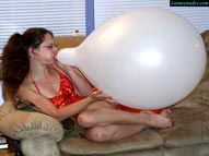 Beverly is asked a favor by her best friend to blow up balloons for a party she is throwing. Even though she is a bit scared of balloons, Bev knows her friend needs her and she can't let her friend down. Beverly tries to convince herself that her fear is not rational and decides to confront it head on. It isn't long before her fears of popping begin to change to more pleasurable feelings. Soon all she wants to do is touch the balloons. She starts out experimenting by sitting on a couple small balloons and is fascinated by how the necks expand and stretch out. The eventual pop initially startles her, but in a way that turns her on. It isn't long before the new feeling start to overcome her and she takes her clothes off and she begins to sweat. She starts rubbing the against her breasts, taking pleasure in the way they feel against her nipples. And when they pop, they give her a tingling sensation that builds up the juices inside her. After a bunch of sit popping, Beverly decides to give blow to pop a try. Things then continue to intensify. She takes a big clear balloon and places it between her legs, stroking it against her vagina, and gives the viewer a clear image right through the balloon. She eventually has to take a break to regain her composure. When she returns, Beverly tries to refocus her efforts on getting the party ready. She decides to give the helium tank a try, but she can not resist the temptation to let the gas continue flow with every balloon. After the booms on the tank, Beverley is hot and turned on once again. She returns back to rubbing the balloons on her naked body and sit popping them. She cries out how the balloons, "make me feel so good". Mixed in with a bit more blow to pop, this is Beverly at her erotic and sexy best. In the end, she destroys all the balloons she was supposed to use for decorations, and quickly runs out the door leaving her friend to discover the mess she made and wonder exactly went on with Beverly and the balloons. Be sure to click on the film reel below for a sample clip from the video.